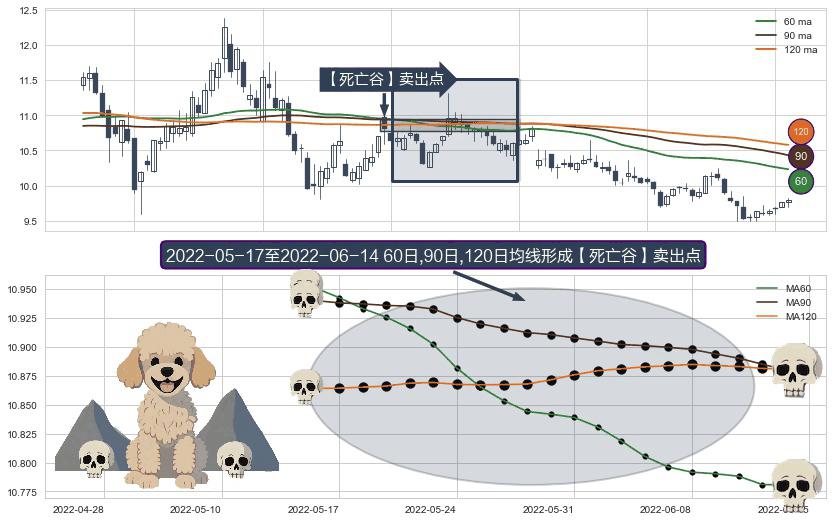 ⚀ 2022-05-18-日至2022-06-14-日显现 60日-90日-120日均线 【死亡谷】卖出点 看空信号,后市看跌,卖出