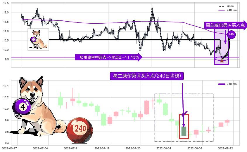 ⚀ 2022-08-03-日显现 葛兰威尔均线 240日均线 第④买入点 下降趋势均值回复的短线反弹信号,后市看涨,买进信号