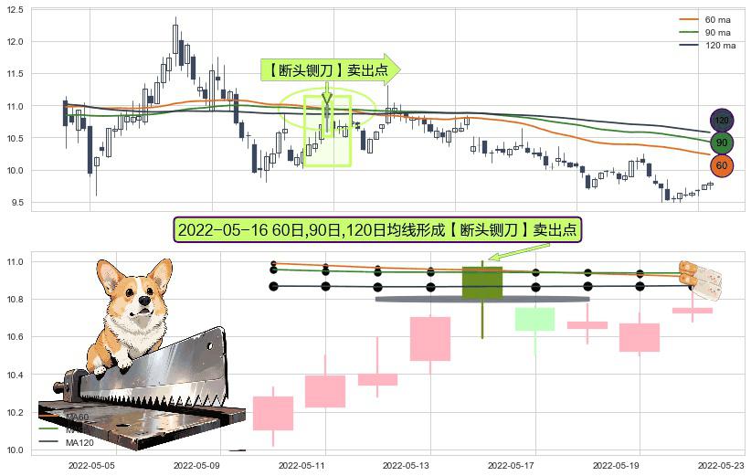 ⚀ 2022-05-16日显现 60日-90日-120日均线 【断头铡刀】卖出点 看空信号,后市看跌,卖出