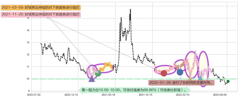 ♘ 阻力价格位10.00,可信任强度68.86%,距离最后交易2022-08-12形成的收盘价格9.80相差 +2.01%