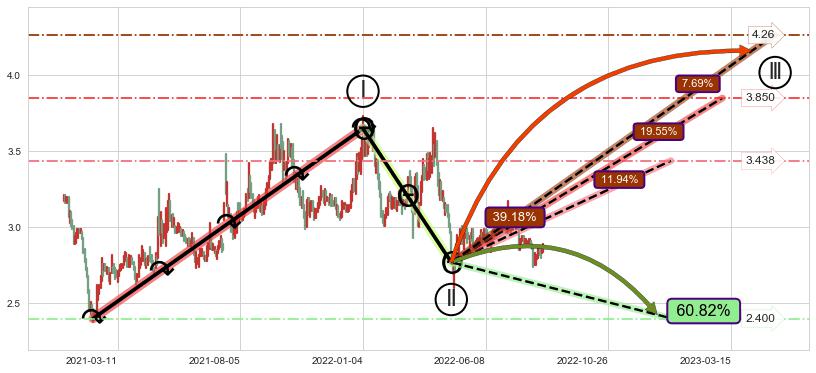 ➣ AI预测: 假定反转启动后, 第❸目标位置(2023-04-03, 2.710)