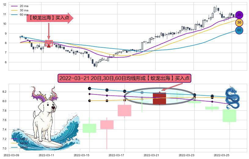形态多维评估: ⚀ 2022-03-21日显现 20日-30日-60日均线 【蛟龙出海】买入点 看多信号,后市看涨,买入