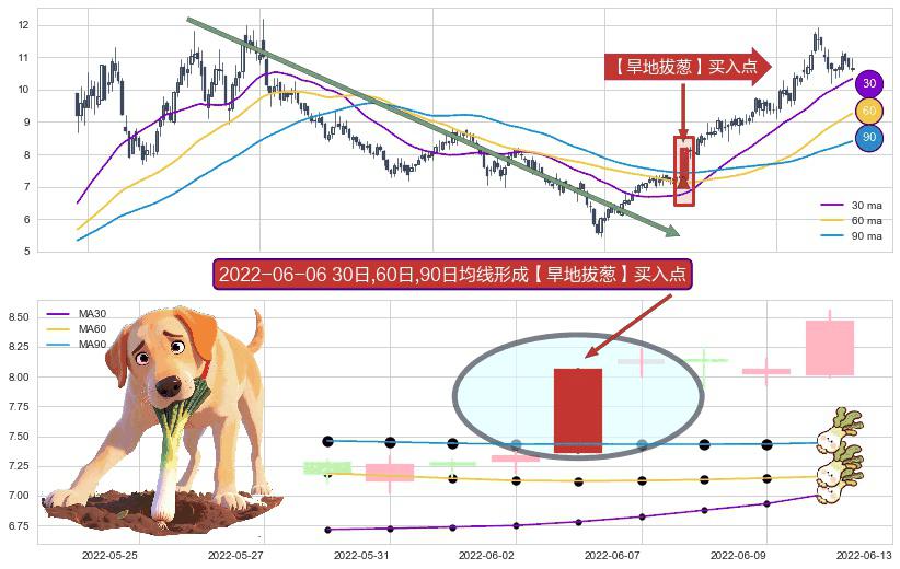 形态多维评估: ⚀ 2022-06-06日显现 30日-60日-90日均线 【旱地拔葱】买入点 看多信号,后市看涨,买入