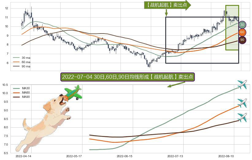 形态多维评估: ⚀ 2022-05-20日-2022-08-12日显现 30日-60日-90日均线 【战机起航】卖出点 看空信号,后市看跌,卖出