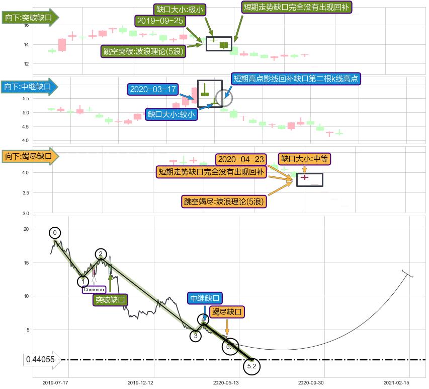 ➢ 2020-04-23形成:向下跳空【竭尽】缺口