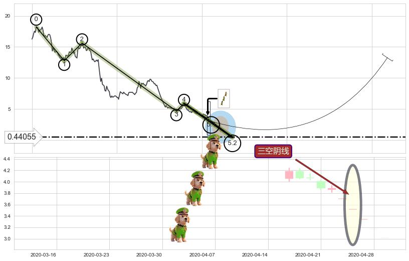 ➣ 5.1: 预测当前第5浪位置(2020-04-29, 3.010),仍然有下跌空间