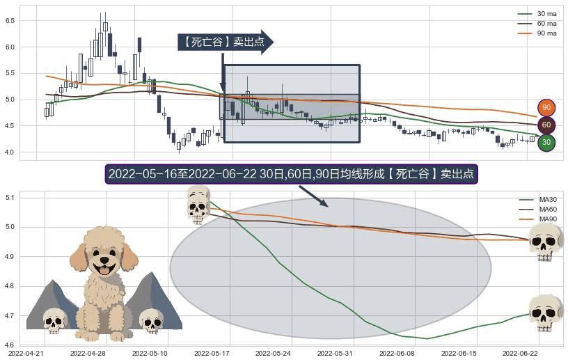 形态多维评估: ⚀ 2022-05-17-日至2022-06-22-日显现 30日-60日-90日均线 【死亡谷】卖出点 看空信号,后市看跌,卖出