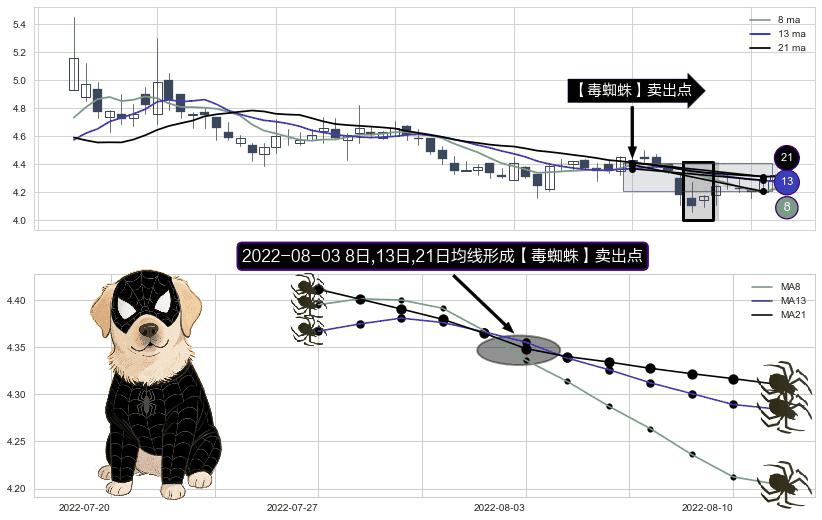 形态多维评估: ⚀ 2022-08-03日显现 8日-13日-21日均线 【毒蜘蛛】卖出点 看空信号,后市看跌,卖出