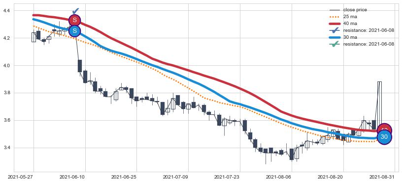 下跌趋势2021-05-27-2021-08-31,均线40, 30确认关键阻力1处