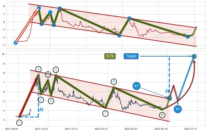 ➣ AI预测: 假定反转启动后, 第❸目标位置(2023-08-23, 7.80)