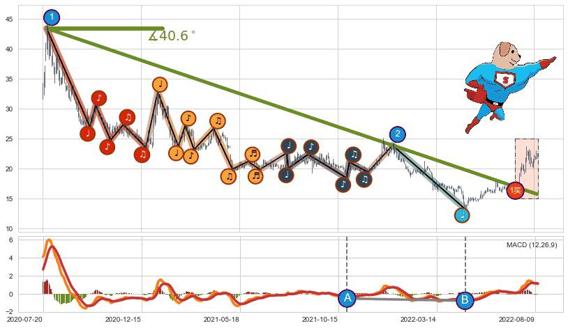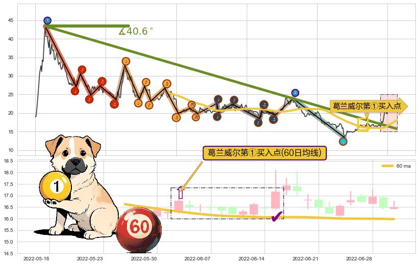 ⚔️ 2020-07-24-2022-06-15下跌趋势存在反转上涨[机会],其原下跌趋势的阻力位(15.77)已被突破[强支撑信号],原下跌趋势角度: 40.6˚