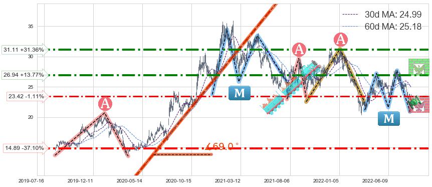 ➢ 【仅预测突破】最后价格:23.68与预测突破价格:27.54→【空间临近】后续最小【整理】第一目标价格→(2023-05-02: 41.94 )
