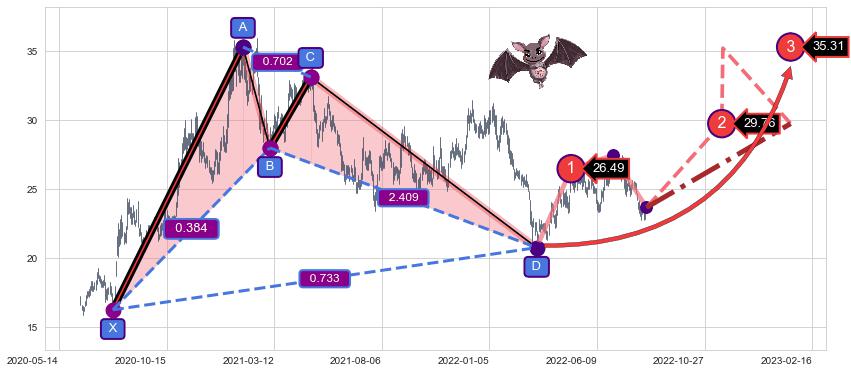 ➣ 已完成【蝙蝠】形态起点X: 2020-07-27, 终点D: 2022-03-15, 共395交易日