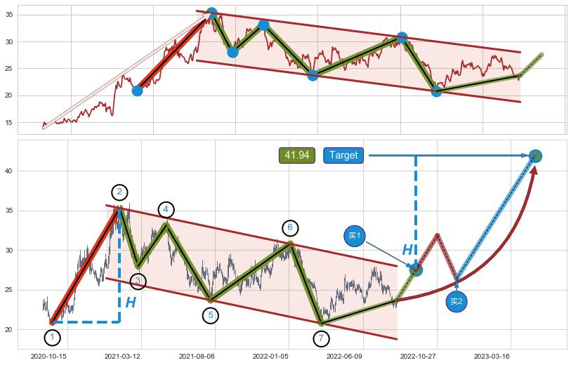➢ AI预测: 假定反转启动后, 第❷目标位置(2023-12-20, 28.41)