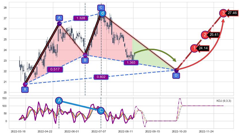 ➣ AI预测: 假定反转启动后, 第❸目标位置(2022-12-07, 27.46)