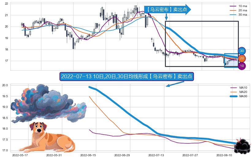 形态多维评估: ⚀ 2022-06-13日-2022-08-12日显现 10日-20日-30日均线 【乌云密布】卖出点 看空信号,后市看跌,卖出