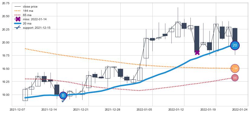 上涨趋势2021-12-07-2022-01-24,均线20确认关键支撑1处