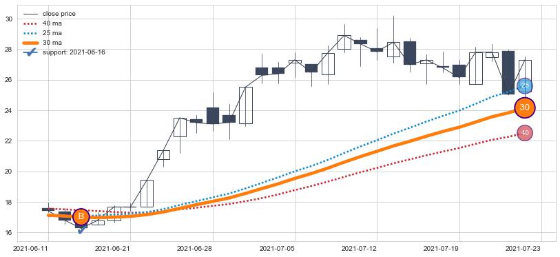 上涨趋势2021-06-04-2021-07-23,均线30确认关键支撑1处