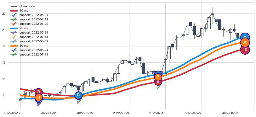 上涨趋势2022-05-17-2022-08-11,均线40, 25, 30确认关键支撑3处