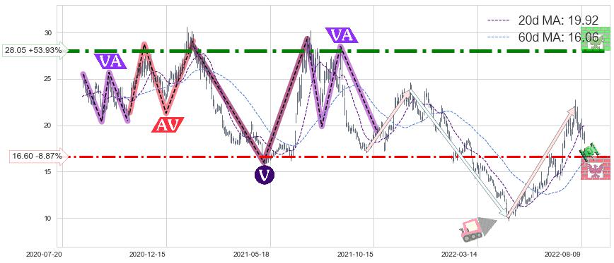 ➢ 2022-07-14到达第❶价格目标位置17.96