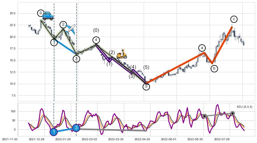 ➣ a,c调整浪MACD, RSI, KDJ走势都【未出现】背离,abc走势延续, 5浪反转概率增强