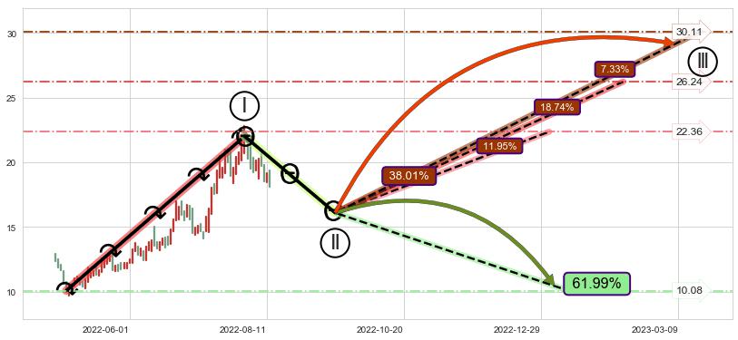➢ 大趋势走坏(跌破5浪起点位置)概率61.99%