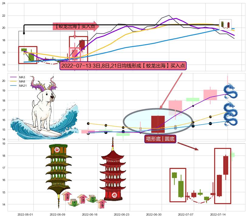 | 3 🅚:阳包阴(穿头破脚) ➕ 🎢:【蛟龙出海】买入点均线组合买入点信号形成后,猜想后续阻力突破,后市持续上涨 ☞ 看多信号 ⇥ 【均线】交织【🅚线】⇥ 综合量化分数: 51 | > |
