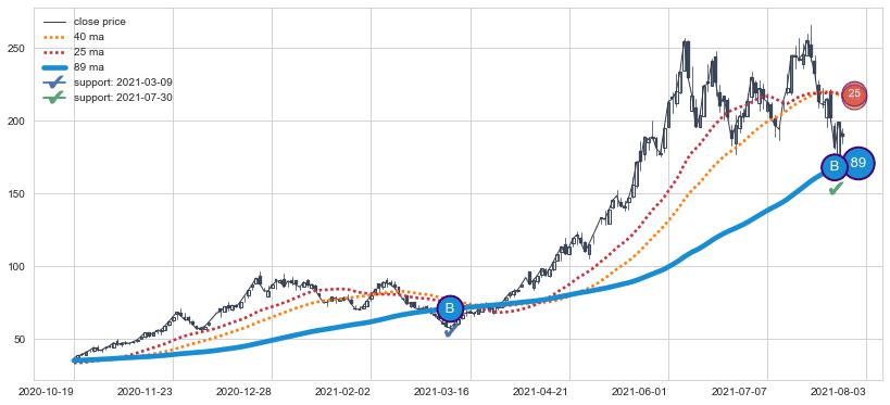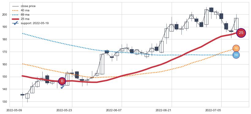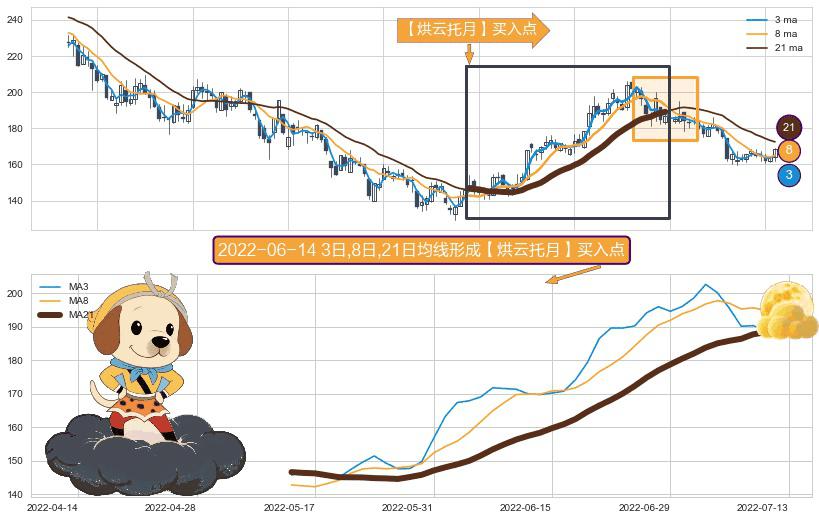 ⚀ 2022-05-13日-2022-07-12日显现 3日-8日-21日均线 【烘云托月】买入点 看多信号,后市看涨,买入