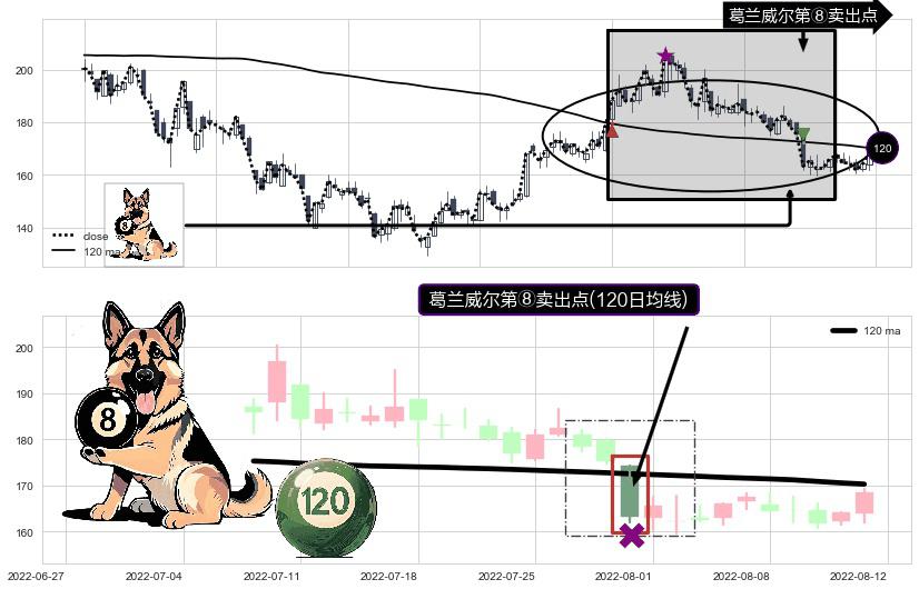 ⚀ 2022-07-29-日显现 葛兰威尔均线 120日均线 第⑧卖出点 下降趋势的中继信号,后市看跌,卖出信号