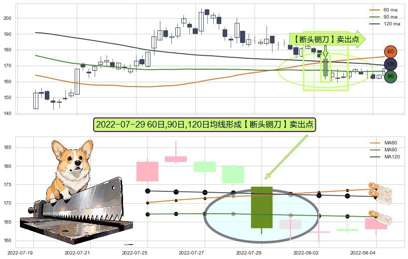 ⚀ 2022-07-29日显现 60日-90日-120日均线 【断头铡刀】卖出点 看空信号,后市看跌,卖出