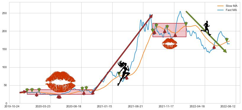 2022-01-12至2022-08-01 慢线与快线呈空头排列, 慢线与快线接触少,无缠绕
