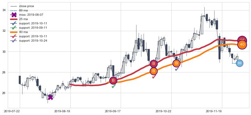 ⚁ MA3和MA8走势平行,且始终保持在短距离内,MA21始终在短中期均线下方,与短中期均线保持一定的距离,微微上行