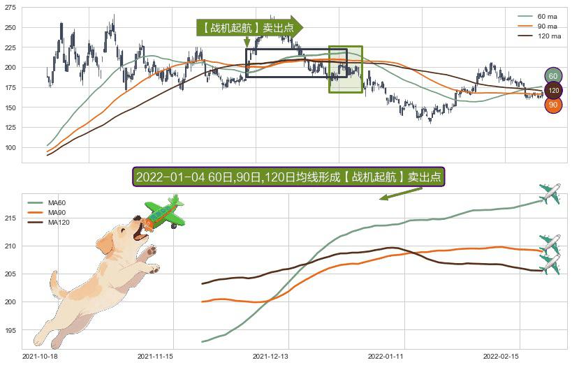 ⚀ 2021-11-22日-2022-02-21日显现 60日-90日-120日均线 【战机起航】卖出点 看空信号,后市看跌,卖出