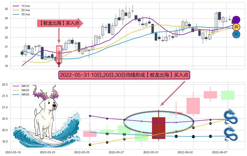 ⚀ 2022-05-31日显现 10日-20日-30日均线 【蛟龙出海】买入点 看多信号,后市看涨,买入
