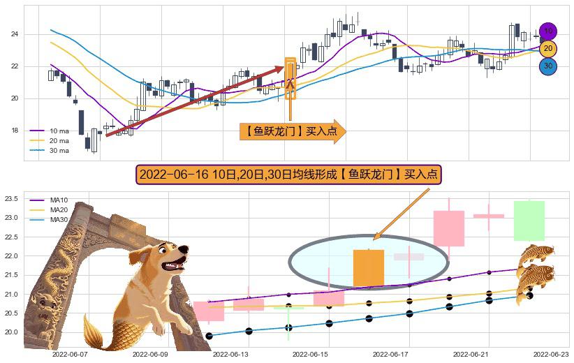 ⚀ 2022-06-16日显现 10日-20日-30日均线 【鱼跃龙门】买入点 看多信号,后市看涨,买入