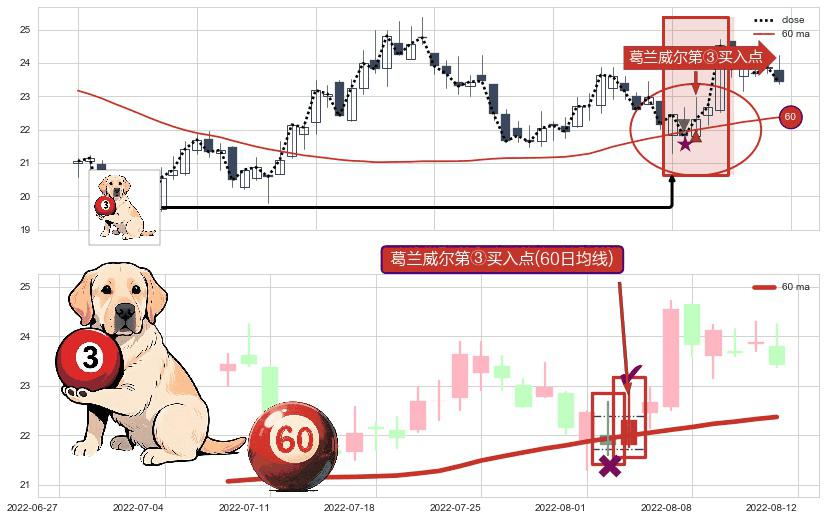 ⚀ 2022-08-03-日显现 葛兰威尔均线 60日均线 第③买入点 上升趋势的中继信号,后市看涨,买进信号