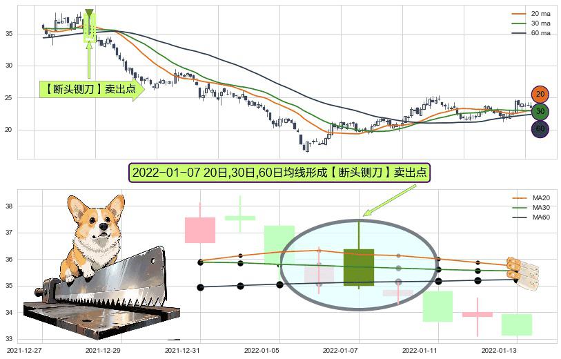 ⚀ 2022-01-07日显现 20日-30日-60日均线 【断头铡刀】卖出点 看空信号,后市看跌,卖出
