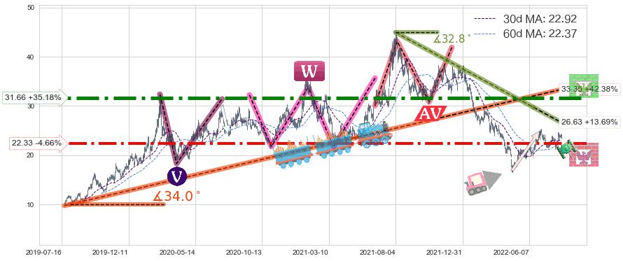 ♞ 30日均线:22.92,60日均线:22.37→ 快线>慢线