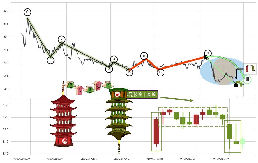 | 2 🅚:绵绵阴跌|下跌不止 ➕ 🌊:波浪理论下跌5浪延续:猜想C点强阻力小反弹终止,猜想保持下跌5浪方向下行(均值回复后大周期继续趋势跟踪) ☞ 看空信号 ⇥ 【🅚线】交织【图形】⇥ 综合量化分数: 42 | > |