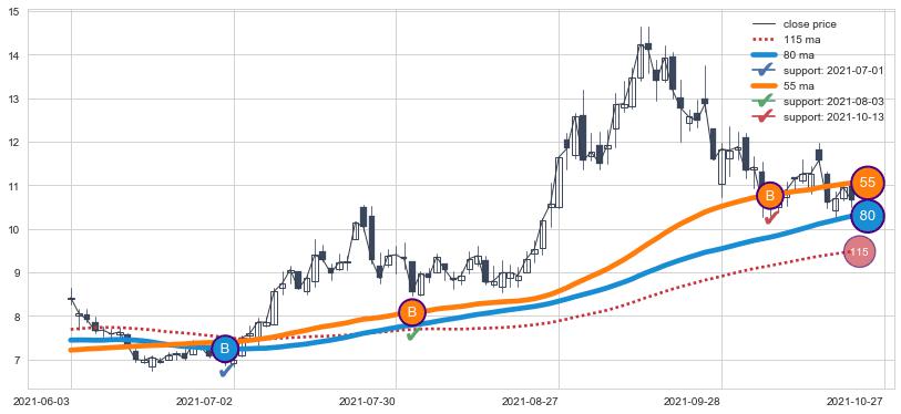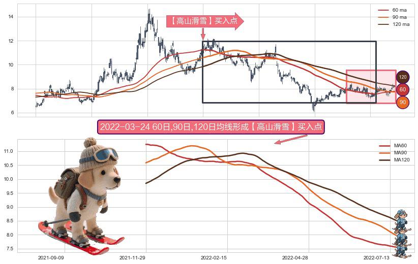 ⚀ 2021-11-29日-2022-07-19日显现 60日-90日-120日均线 【高山滑雪】买入点 看多信号,后市看涨,买入