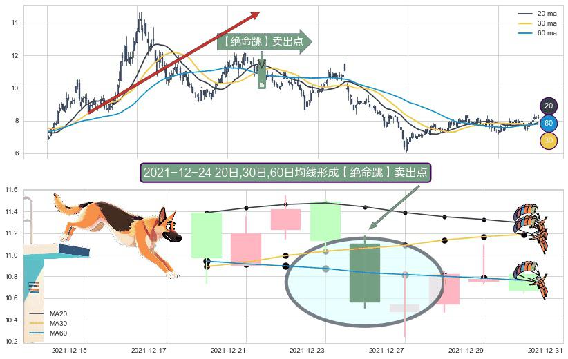⚀ 2021-12-24日显现 20日-30日-60日均线 【绝命跳】卖出点 看空信号,后市看跌,卖出