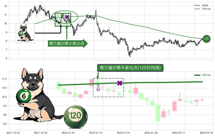 ⚀ 2022-01-13-日显现 葛兰威尔均线 120日均线 第⑥卖出点 走势反转见顶信号,后市看跌,卖出信号