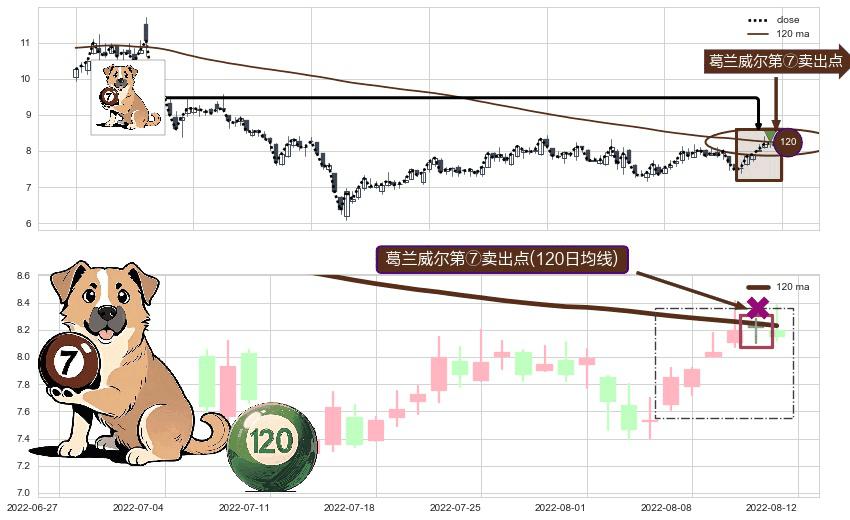 ⚀ 2022-08-11-日显现 葛兰威尔均线 120日均线 第⑦卖出点 下降趋势的中继信号,后市看跌,卖出信号