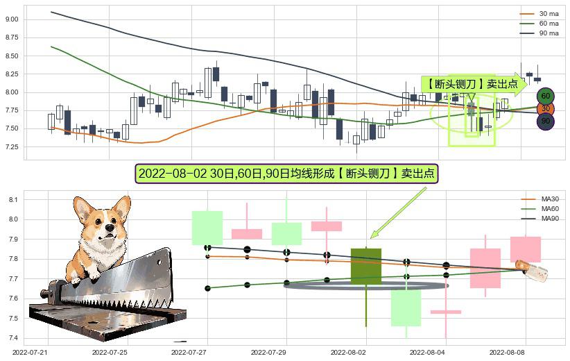 ⚀ 2022-08-02日显现 30日-60日-90日均线 【断头铡刀】卖出点 看空信号,后市看跌,卖出