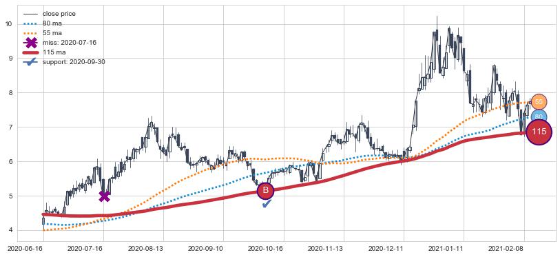 ⚃ 在破位点附近ma走势稍微出现走平迹象,但ma下垂迹象稍稍滞后,信号【可信度中等偏下】