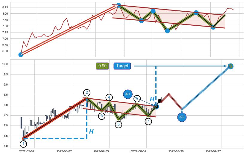 ➣ D点拟合预测价格8.87,距离最后交易收盘价格8.15相差 +8.81%