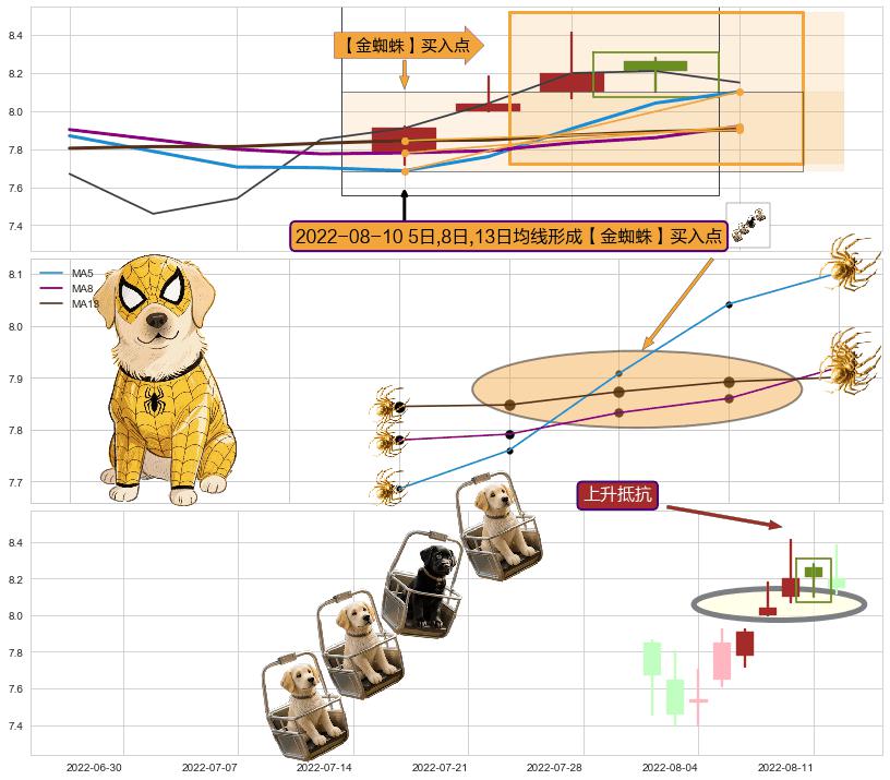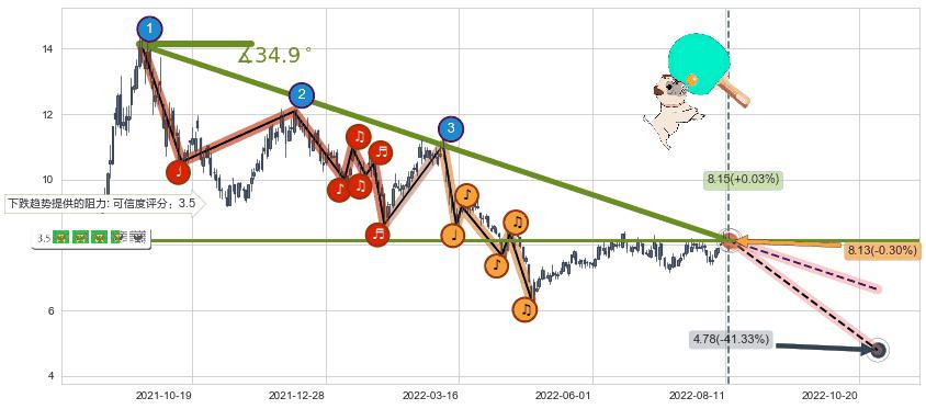 ♘ 阻力价格位8.94,可信任强度85.84%,距离最后交易2022-08-12形成的收盘价格8.15相差 +9.73%