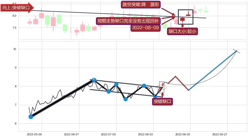 ➢ 【买1】: 激进型 买点 →(2022-08-09: 7.93 )形成突破降⚑旗形【整理】形态
