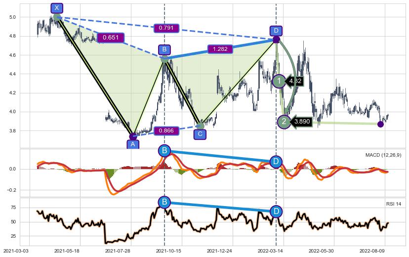 ➢ 谐波价格D点比B点高 ⤴,【MACD】指标D点比B点低 ⤵️