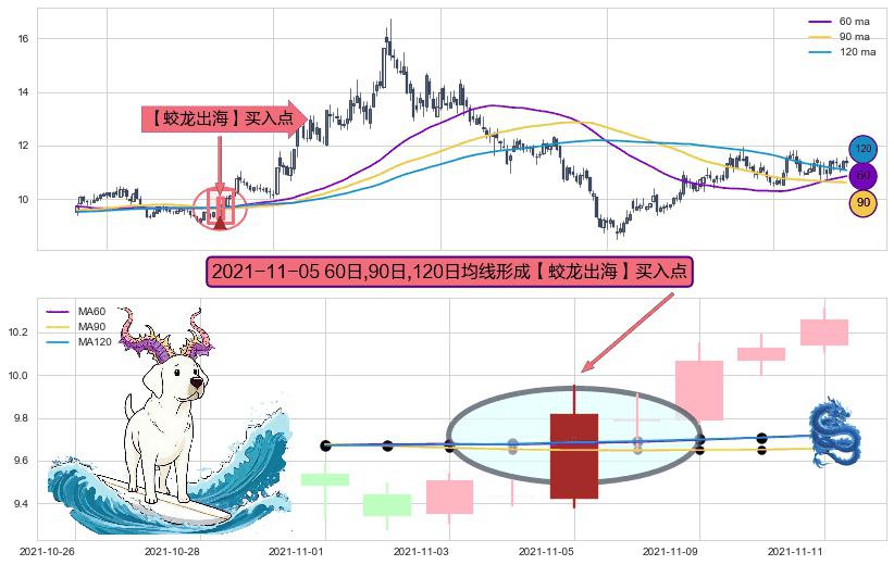 ⚀ 2021-11-05日显现 60日-90日-120日均线 【蛟龙出海】买入点 看多信号,后市看涨,买入